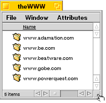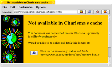 So where do all the files go ?The captured files are carefully strored according to their origin host and hierarchy in a folder named /boot/home/theWWW. You can try to view them with Net+ from there, but it is not a very good idea, since absolute links (containing http://) will not point to the cached data. This is where the Charisma stuff starts. |