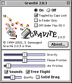 - 68K users: Gravité 2.0.3 won't run on your machine (transparent